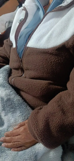 Thick lamb fleece warmth with zip closure and quilted patchwork for stylish winter comfort